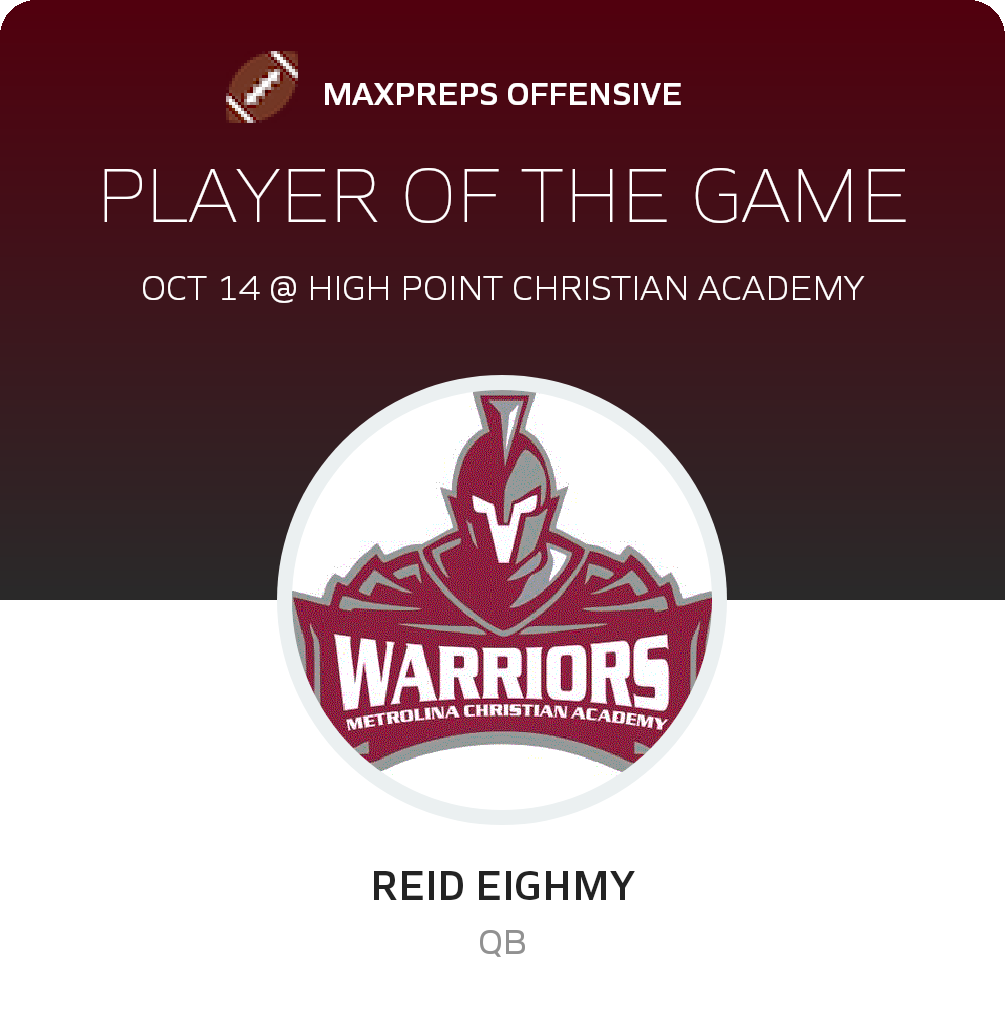 . Metrolina Christian Academy Football 2019. Our Warrior athletic teams promote physical mental and spiritual growth for our student athletes. Metrolina Christian Academy admits students of any race color national and ethnic origin to all rights privileges programs and activities generally accorded or made available to students at.
